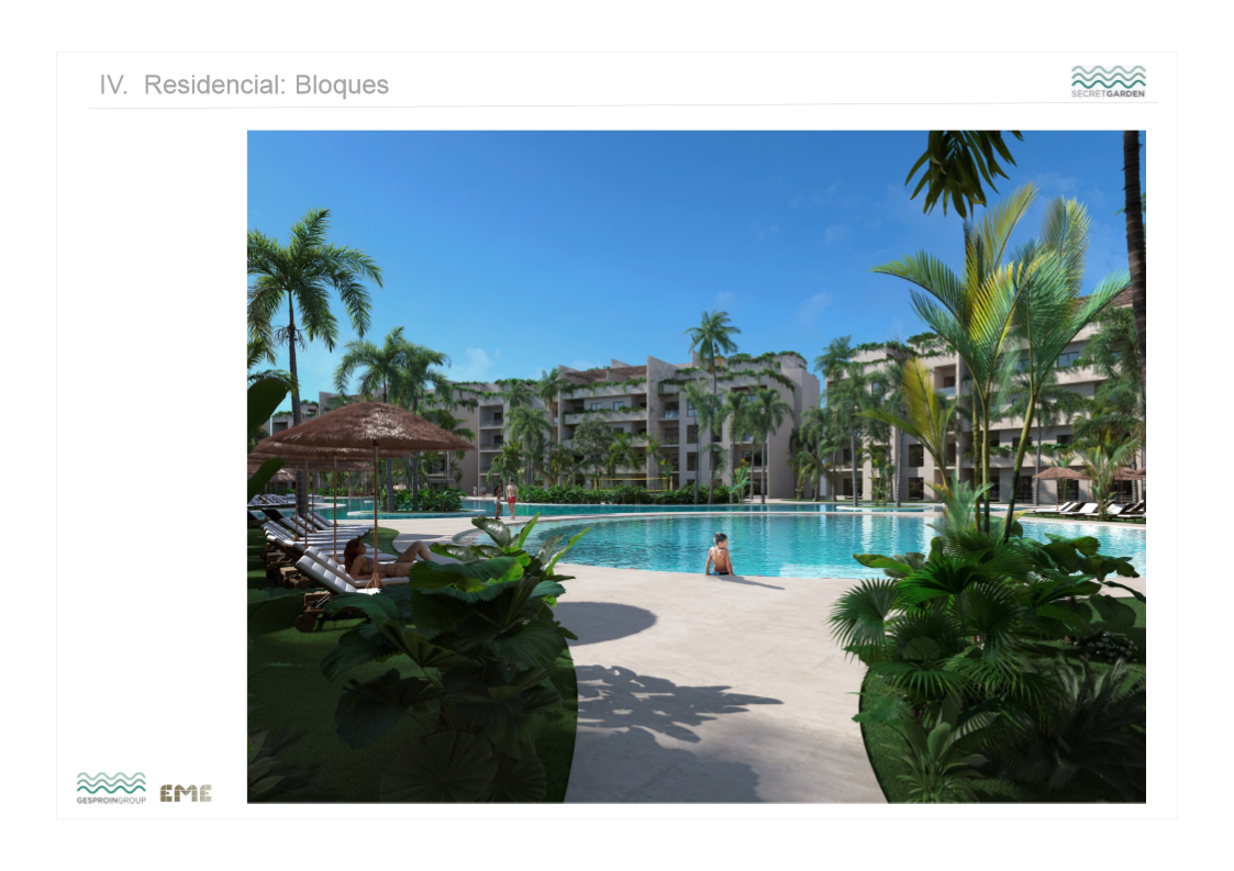 This exuberant development is ideally located in the heart of the tourist town of Bavaro, just a very short walk from the Cortecito (Bavaro) beach. This generous sized community construction is well underway on 50,000 m2 / 538,000 sq. ft. of premium land by the beach. This community thought of everything. Owners and// or their vacation rental guests can enjoy a full commercial and recreational area just steps away. The commercial area is already built and shop owners are already moving in.