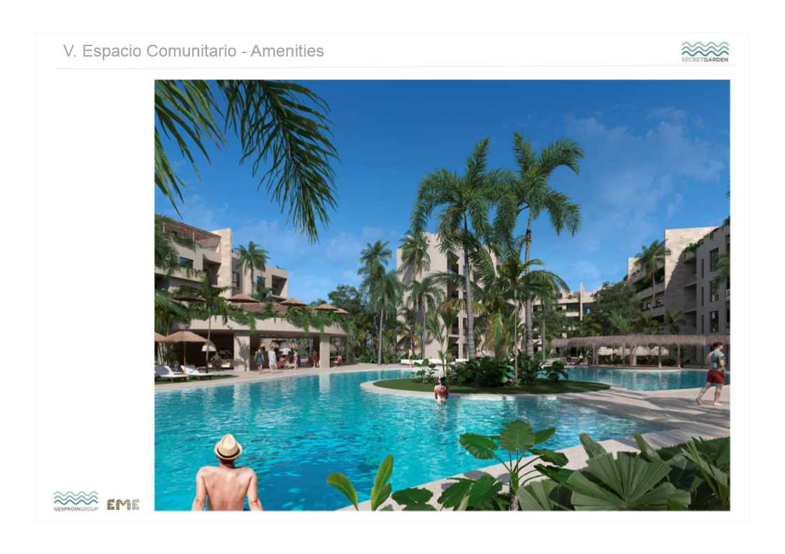 Here's a list of the wide variety of amenities this tropical community includes: - Restaurants - A Gym - Co-working space - Beach volleyball court - Miniature golf - Swimming pool (1,800m2/19,369 sq. ft.) - Pool bar - Children swimming pool - Children playground - Large garden areas.