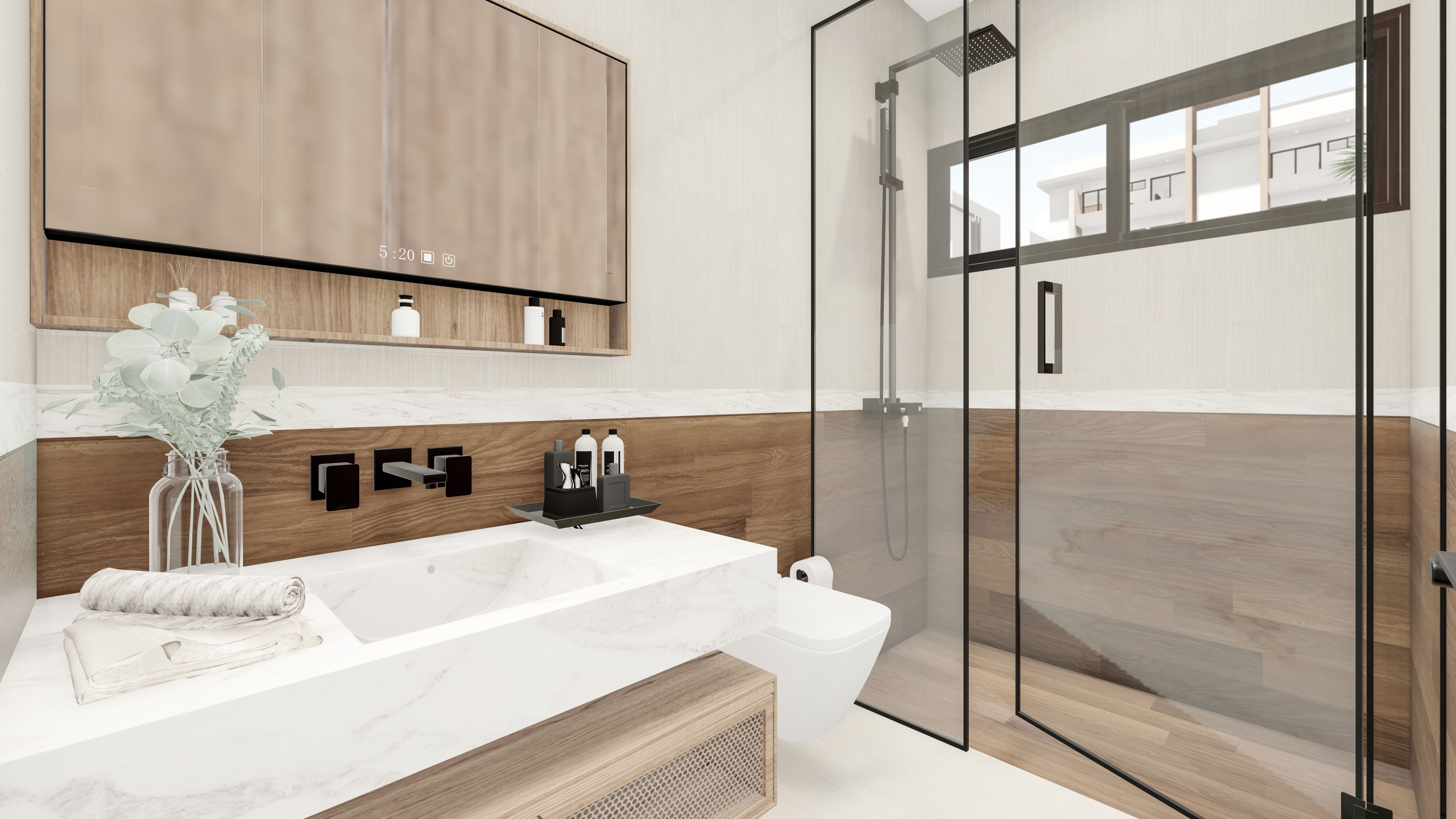 Inside the master suite, you’ll find a large walk-in bathroom with high-end fixtures.Everything is designed for your comfort, from the textures under your feet to the light above your mirror.
