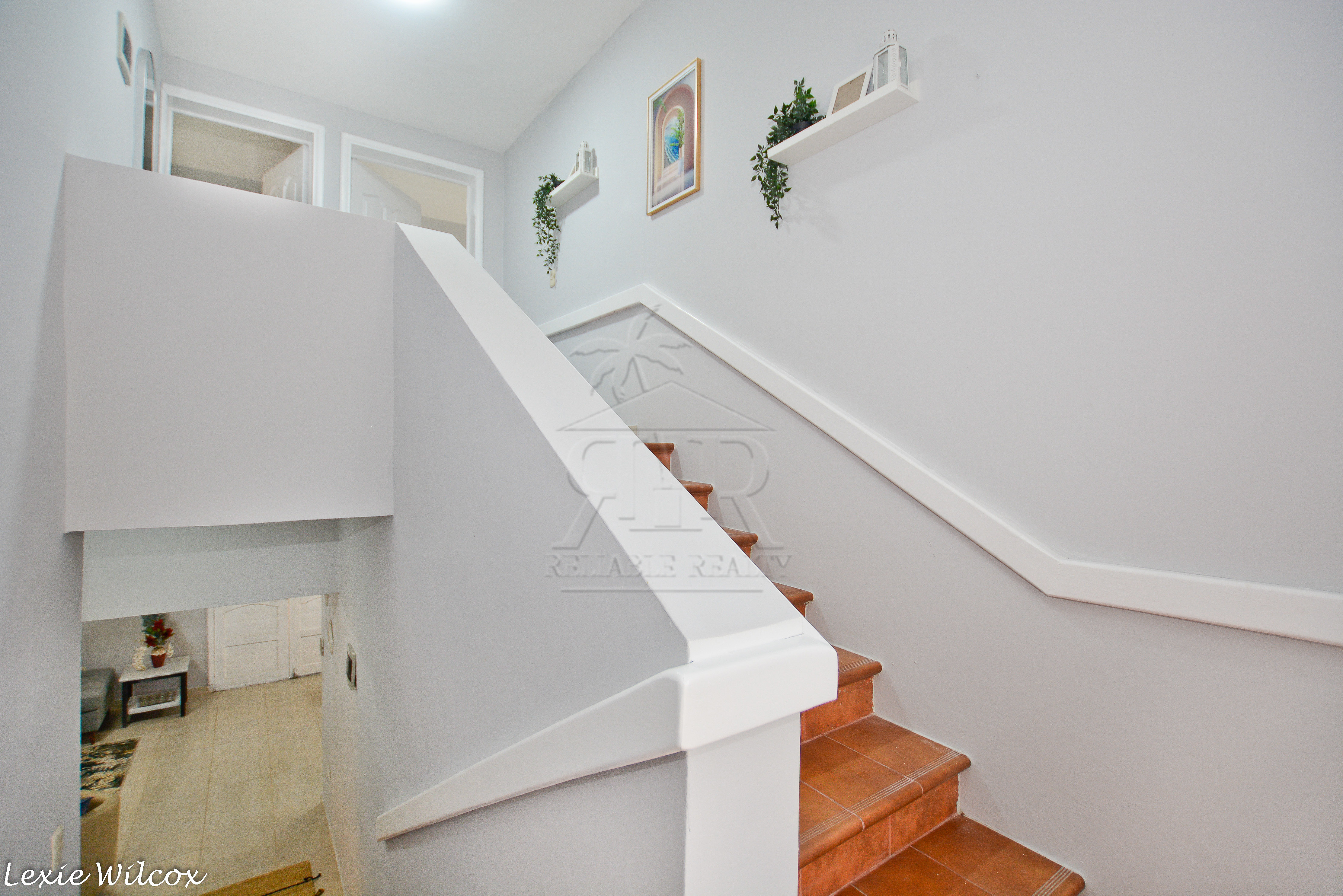 This spacious 1829 sq. foot (170 m2) in size, spreads over 2 levels. Size includes the interior space (approx. 1550 sq. ft), as well as the front covered patio, the 2nd level covered patio, and the back patio space. Plenty of outdoor places to lounge for shade or sun no matter the time of day (or night). The front patio is shaded and provides nice pool and lush community landscaping views. While the patio in the back boasts a private backyard, large enough for an expanded tiled patio and BBQ area, a garden or even a jacuzzi or picuzzi.
