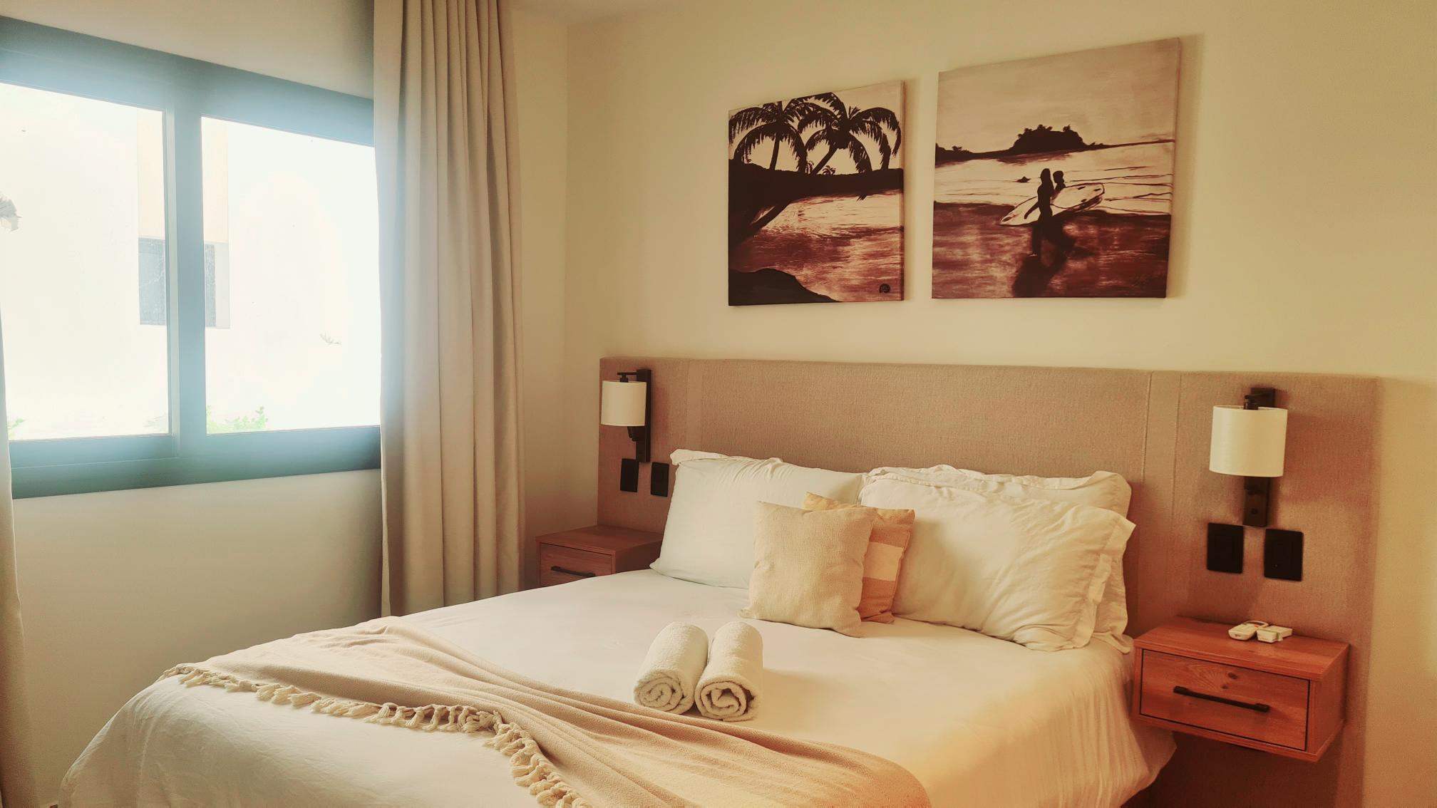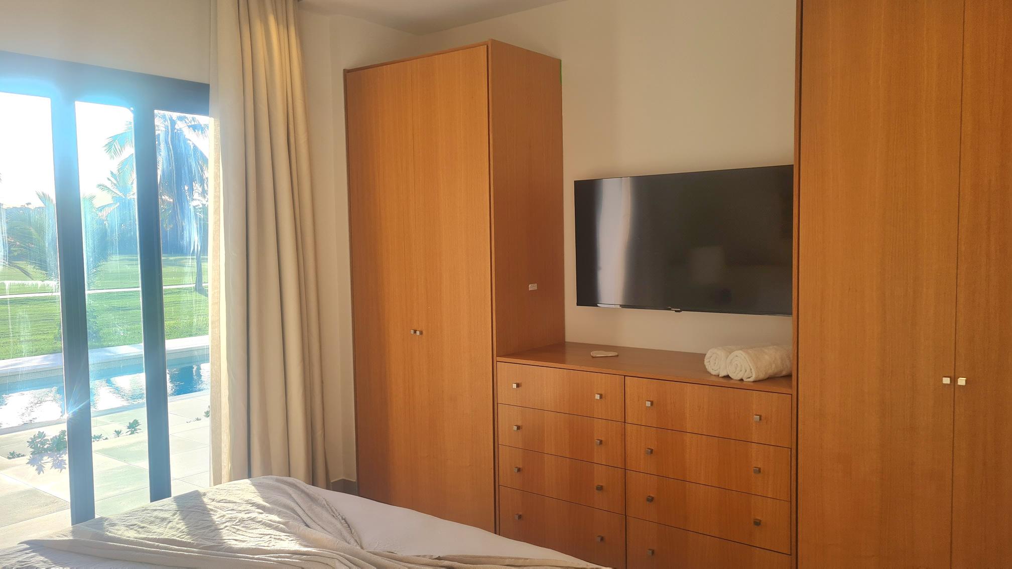 The large sliding windows allow plenty of natural light and a cross-breezes. The residence offers two private parking spaces, as well as a a few swimming pools, accessible only to residents of this Golf Garden complex. The location of this community closer to the front entrance- exit, meaning a short drive to the owners' private beach club within the Melia Resort. Also ideally close to other public beaches accesses in the beach towns of El Cortecito and Los Corales, where you'll discover 5 more beach accesses, and over 45 dining options.