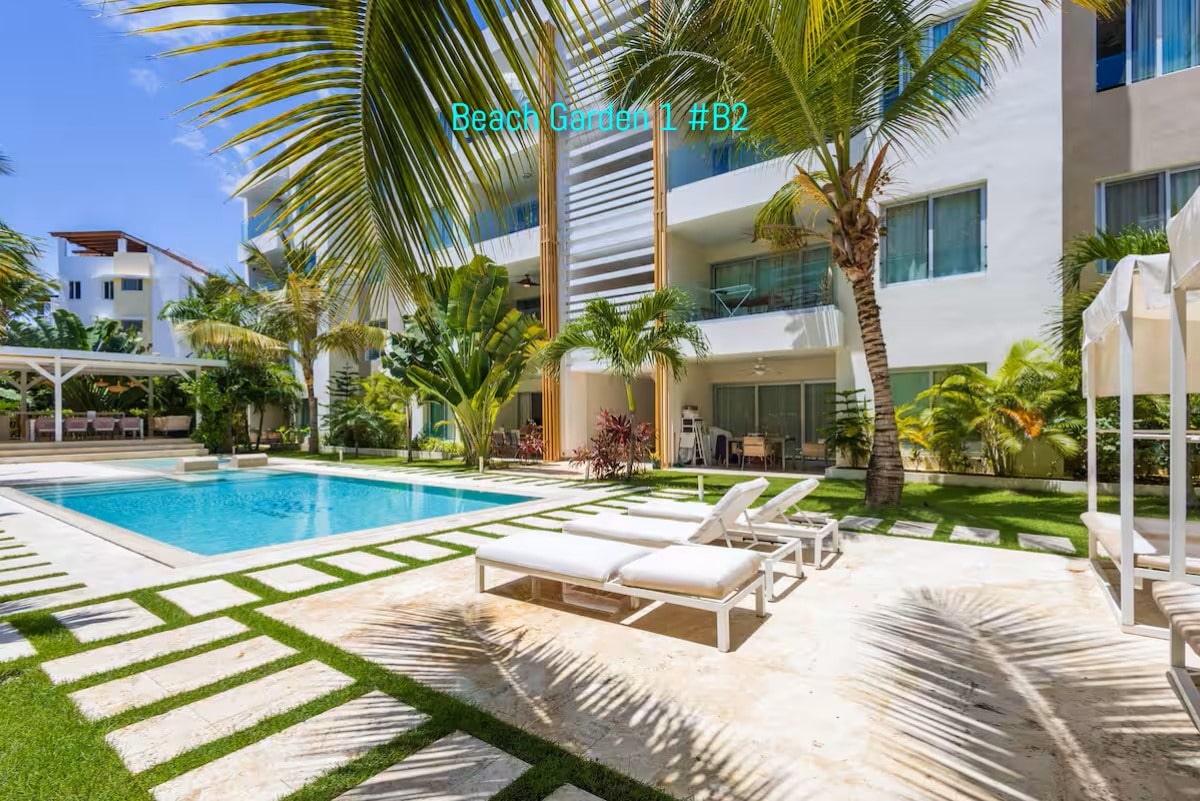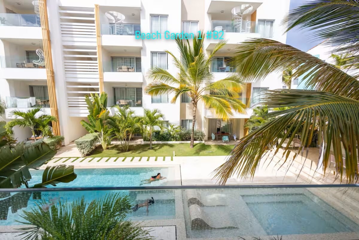 Welcome to Beach Gardens. A contemporary oasis condo community within a 1-minute walk to one of the Caribbean's most admired beaches in Bavaro, Punta Cana. Dive into a private infinity pool surrounded by beautiful tropical gardens. A perfect condo to leverage as a vacation rental when you are not using it. This is one of the closest condo communities to the favored Los Corales white sandy Beach.