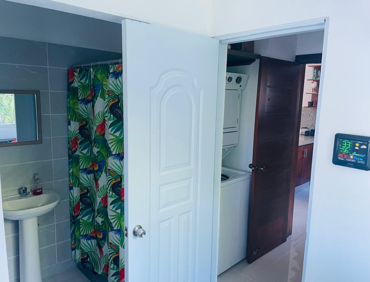 The monthly cost for a live-in housekeeper is only around $300.00 U.S. The housekeeper can cook, buy groceries, clean, and, if desired, can even assist your guest when entertaining. Should you additionally desire nanny (baby-sitting or dog-sitting) services, this is possible for a slightly higher monthly fee. Housekeepers are common here; a tradition from many Europeans and Latin American culture who immigrated here. Housekeepers appreciate the work so they can better support their families. There is a separate side entrance for the housekeeper, along with another small, but full, 3rd bathroom. The service quarters is conveniently located near the laundry area and the kitchen.