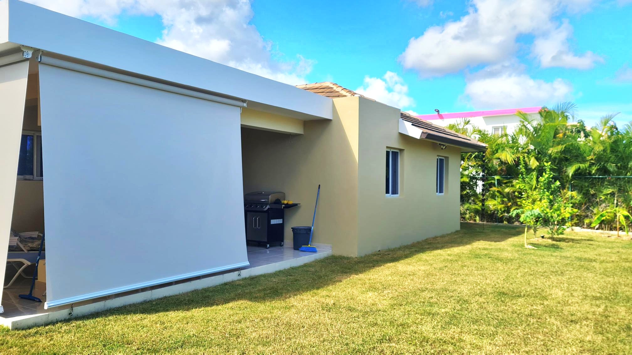 - Covered Terrace of 19’.2” x 10'.4" (20.6 m2)- This home will be sold complete with the the outdoor patio furniture, the BBQ grill, a ceiling fan, pull-down sunshades. An ideal for tropical breezes, relaxed dining, and rejuvenation.