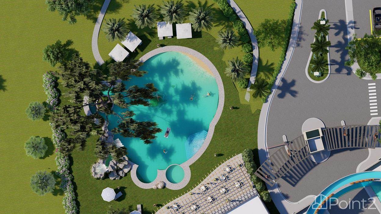 This new residential Development has 3 phases and is well under construction, Phase I is finished, Phase II is about 50% constructed as of Spring 2025. Phase III starts soon. This residential community offers a unique concept that has everything you, your family, and/ or guest will desire, right on site! This Residential community is situated within a natural area, preserving as much nature as possible. Like the nature walking trail and park, and the community pool, surrounded with white sand for a small beach feel. Everything you need will be onsite, including a convenient commercial zone, directly inside this perfect Villa community. Keep reading!!!