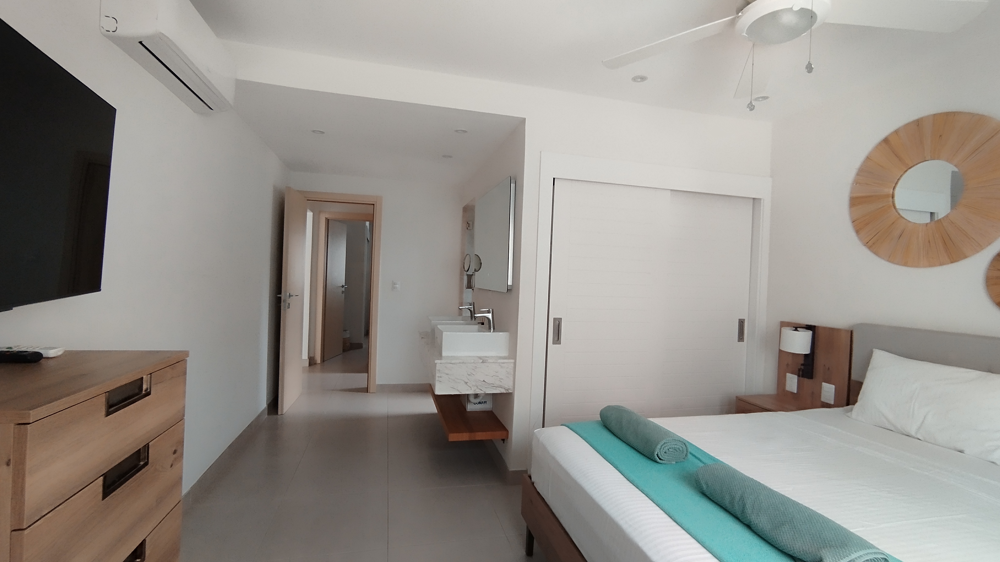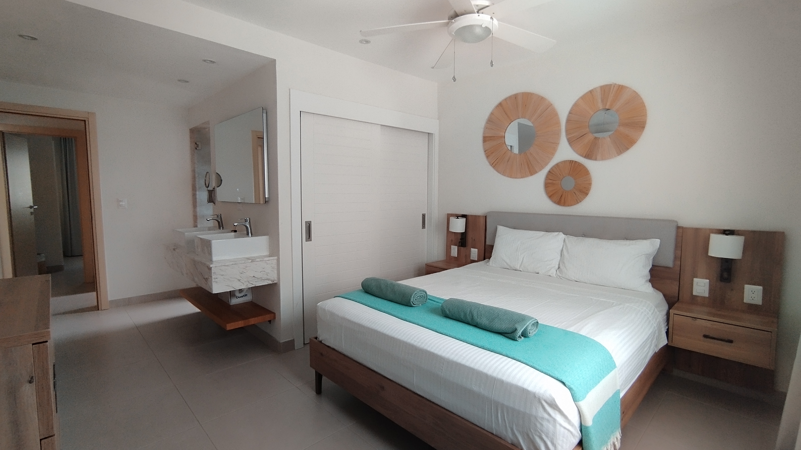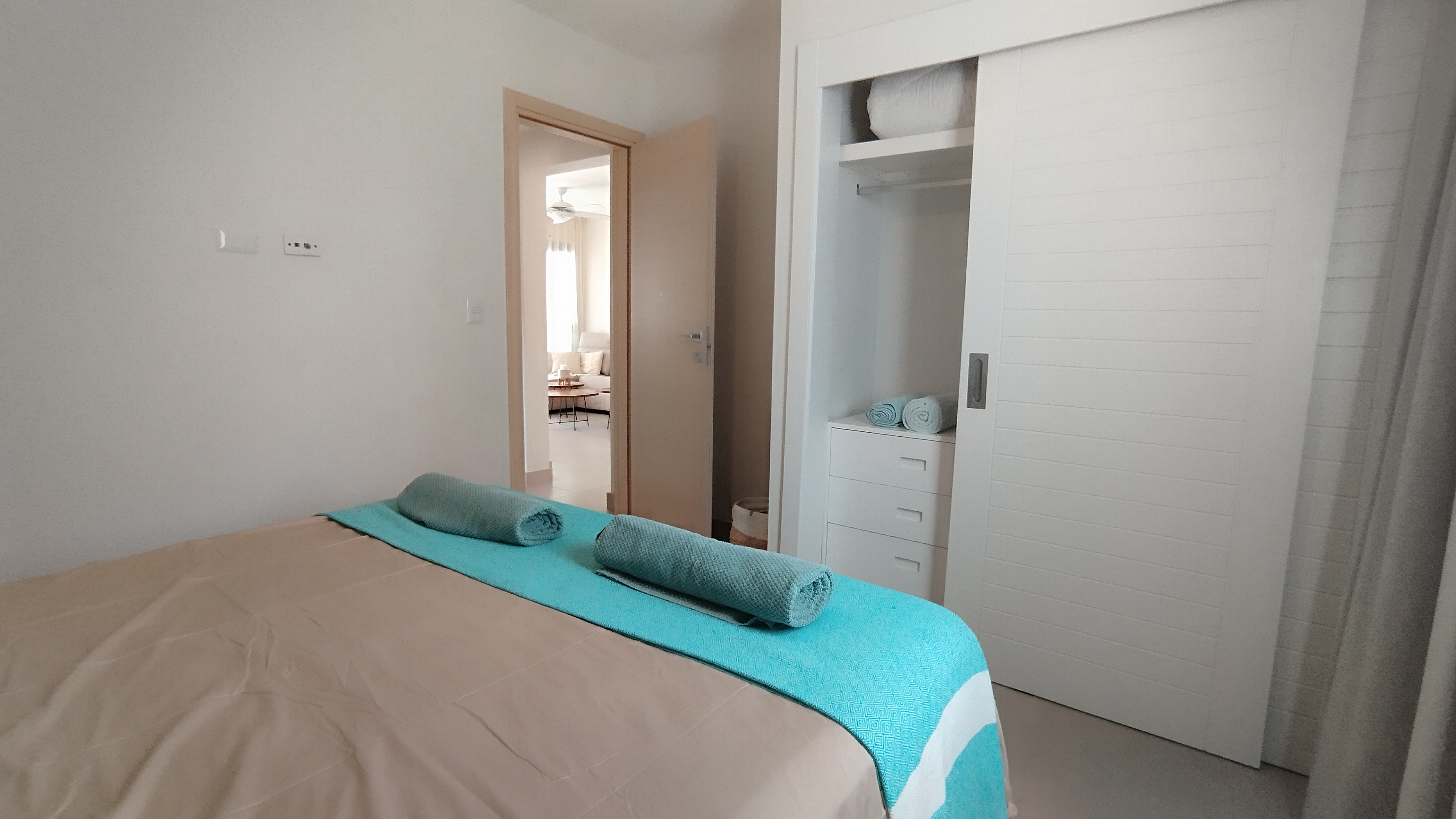 For ease and convenience, the beach is located less than a 2 minute away. The beach offers an excellent restaurant, a world-class Dive shop for snorkeling and scuba diving enthusiasts, with a convenient and modern mini market directly across the low traffic street. Los Corales is the favored HGTV renowned beach town in Bavaro (Punta Cana) offering an array of other commercial plazas for shopping, dining, and all the service amenities needed.
