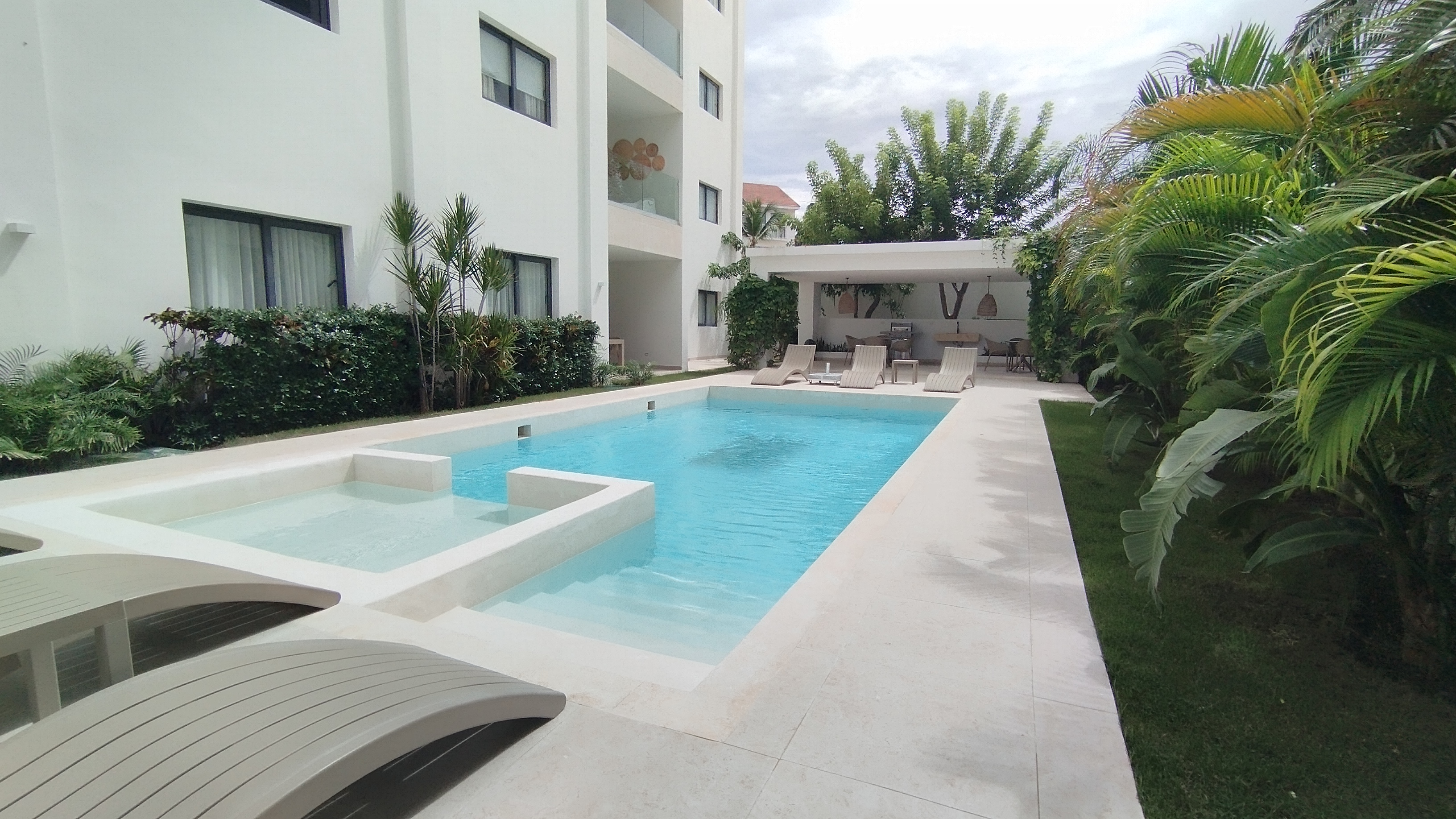 Suites Garden has a beautiful entry lobby, 24/7 security, gated parking, high quality osmosis water treatment system, a well-thought-out lap and infinity pool, plenty of comfortable lounge chairs. Surrounded by beautiful, lush, tropical landscaping and a spacious and covered BBQ/ eating area.
