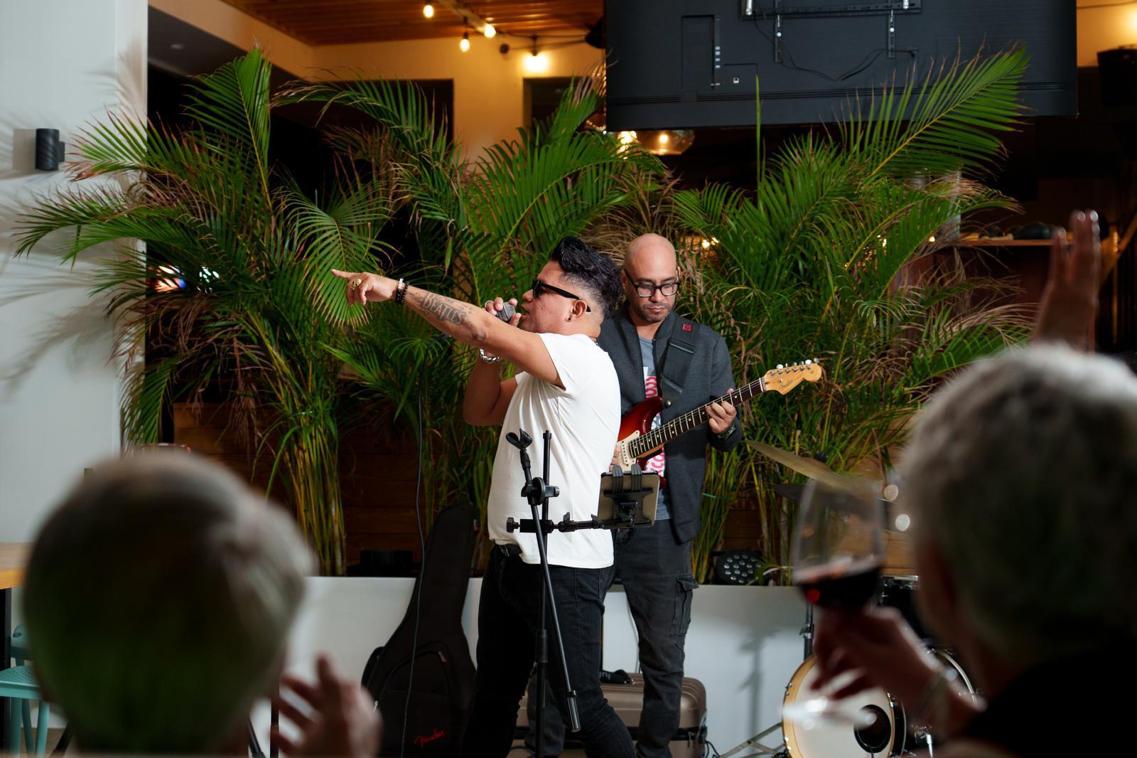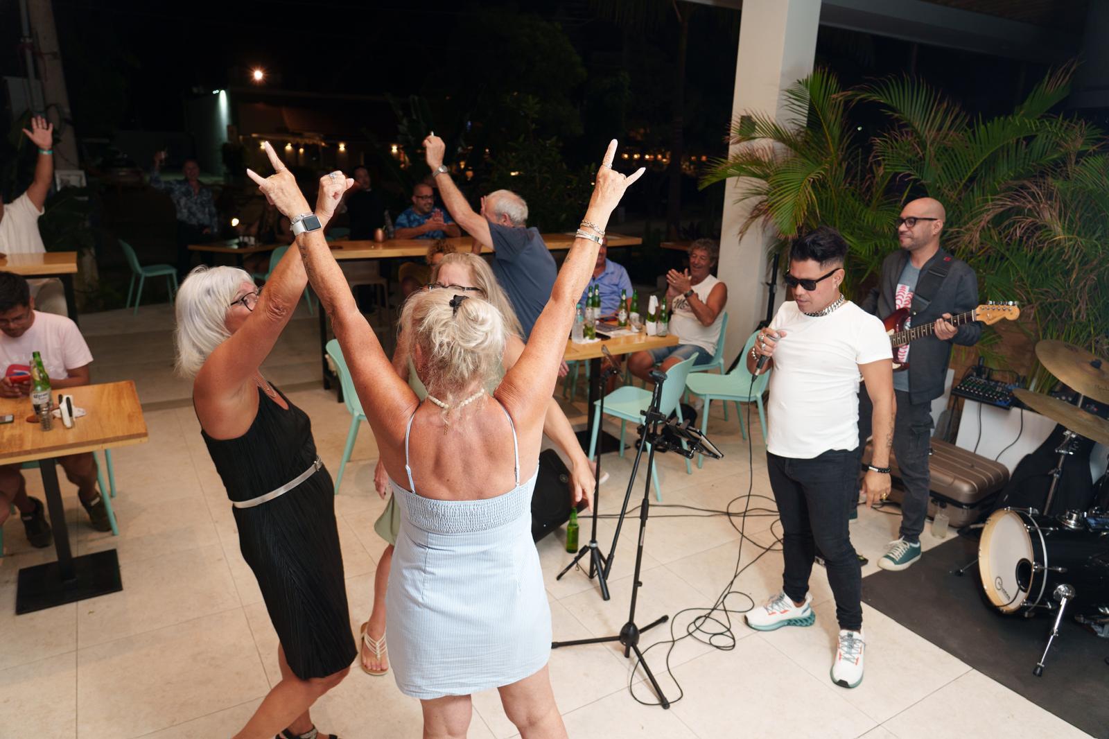 - 2 high standing bar tables (seating 8–16 people)